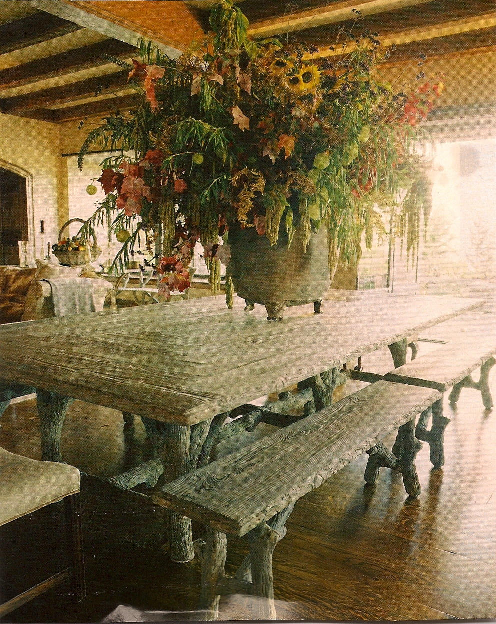 and the colorful vases were not there, as well as, upholstering the bench in a light linen.