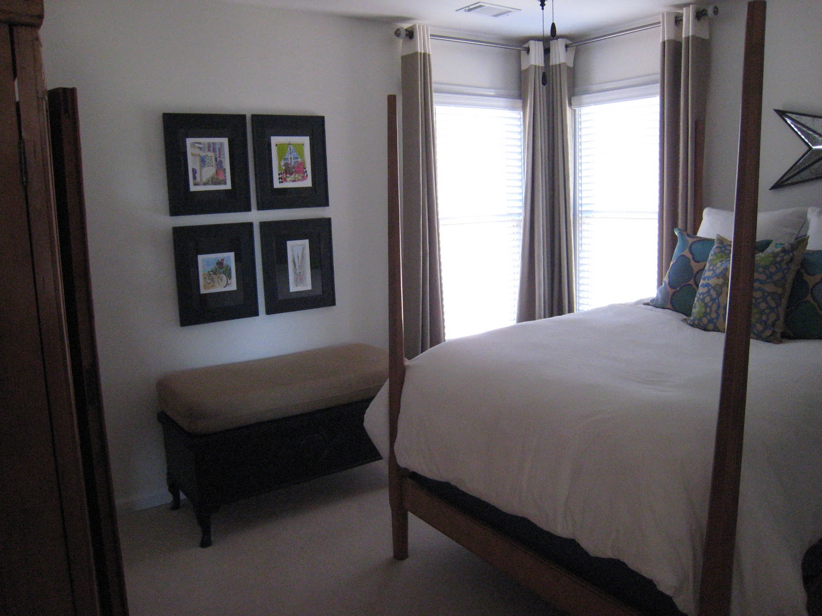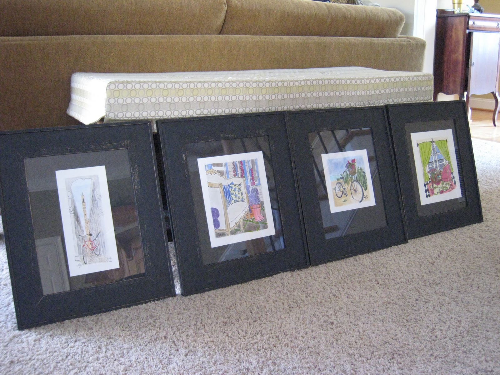The family room sofa was upholstered 3 years ago before I began reading design blogs and being inspired by neutral bases with color used in other ways. I am soooo itching to reupholster the sofa. Found a perfect linen yesterday. Think I'll have to wait until Mr. MD is out of town!