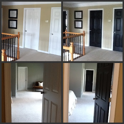 The bottom two pictures (above) are the master bedroom bath and I used 'Forever Black' (Behr) here, the rest of the doors are the SW 'Black Magic' (6991 all surface enamel).